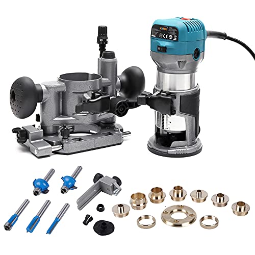 KATSU Electric Hand Wood Trimmer Laminator Router Connection Tool 220V 710W + 1/4" Chuck + Submerged Base + Router Bit + Bushing Set