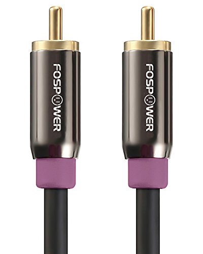 FosPower Subwoofer-kabel (3,0 m/10 fot), [24K guldpläterad | dubbelskärmad] RCA subwoofer ljudkabelanslutning för surroundljud/Dolby Digital/DTS - hane till hane