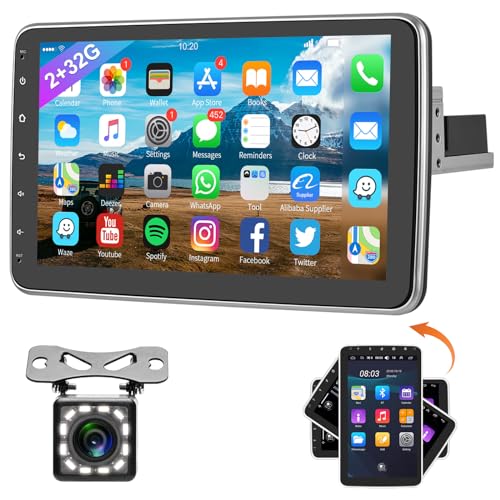 2 x 32 G】podofo 1 din Android-bilradio med 10 tums pekskärm, bilstereo med spegellänk GPS-fartyg Wifi FM/RDS-radio 2 USB MIC+AHD retrocamera+subwoofer RCA-kabel