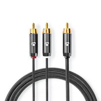 Nedis subwoofer Kabel | RCA Hane | RCA Hane | Guldplaterad | 3.00 m | Rund | 4.5 mm | Antracit / Grått Med Metall | Lock