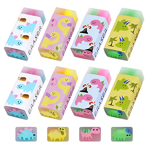 Vicloon Radera suddgummi, 8 st konst raser suddgummin, färgglada radergummi för barn, dinosaurieutskrift, för student, skiss, kontor, skoltillbehör, ritning, brevpapper gåvor