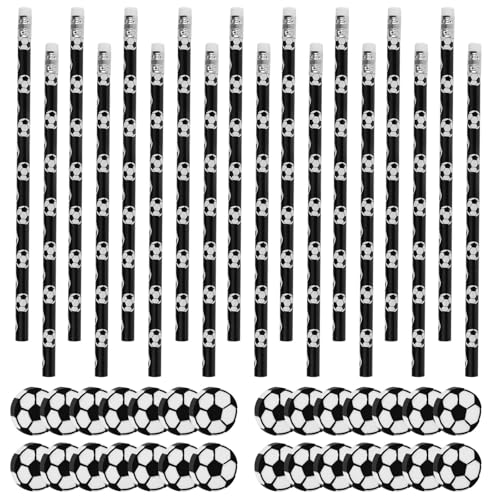 18 stycken fotbollspennor, 18 stycken fotbolls-suddgummi, barn, fotbollsdekoration, födelsedagssuddgummi, träpennor, fotboll, festpåse, fyllning för skola, brevpapper, barns födelsedag, gästpresenter