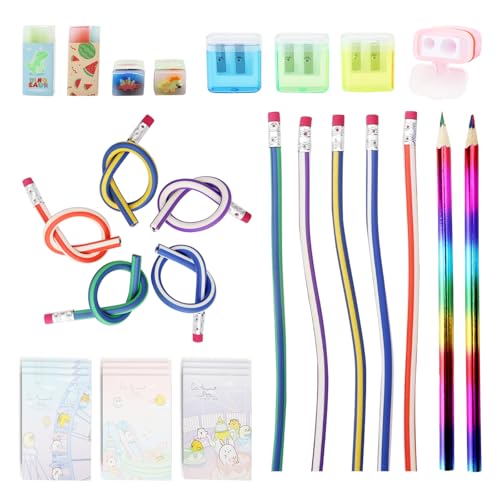 27 st skolstartsgåva, pennvässare böjpennor barn suddgummi barn gästgåva barns födelsedag blyertspennor barn present skolstart flickor skoltillbehör skrivmaterial set anteckningsbok
