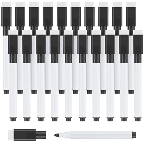 Soskakiist OFFCUP Whiteboard-markörer, 20 st magnetiska markörer, whiteboardpennor magnetiskt radergummi, markeringspennor, suddgummi, fin spets, whiteboardpenna för barn (svart)