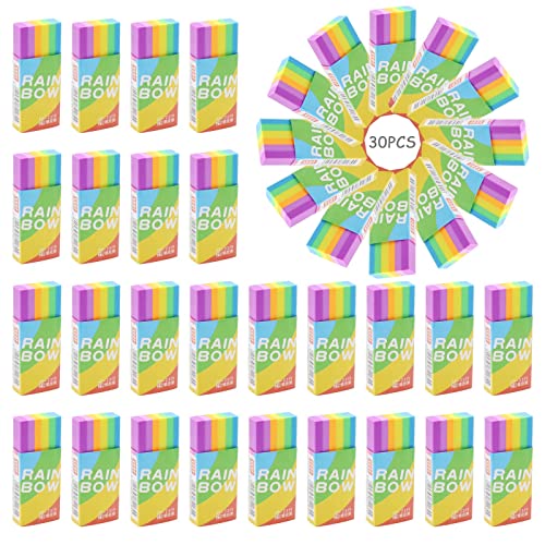 Suddgummi-set, 30 stycken 2B barn regnbåge suddgummi färgglad, mjuk för skolor skisser kontor tecken