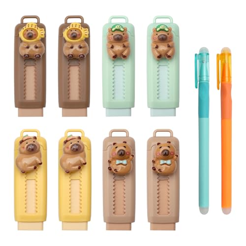 YHUIKXIN 8 St Raderbara Gelpennor Kawaii Raderbar Penna Djur Tecknad 0,35 mm Raderbar Gelpenna set Med 30 St Refill Och 2 Suddgummi för Barn Vuxna Studenter