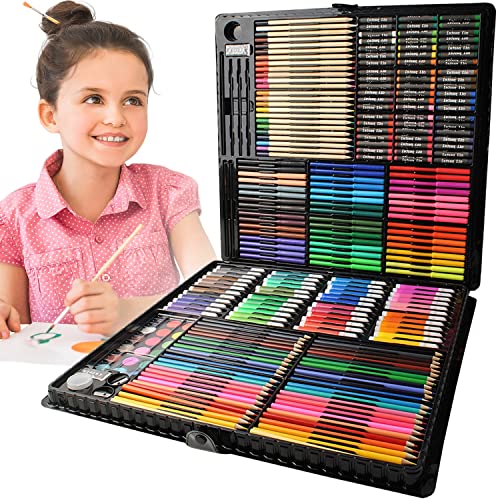 ISO TRADE målarlåda för barn 258 TLG ritset – inkl. Vaxpennor, vattenfärger, pasteller, filtpennor, penslar, suddgummi, pennor i en praktisk målarväska 8643
