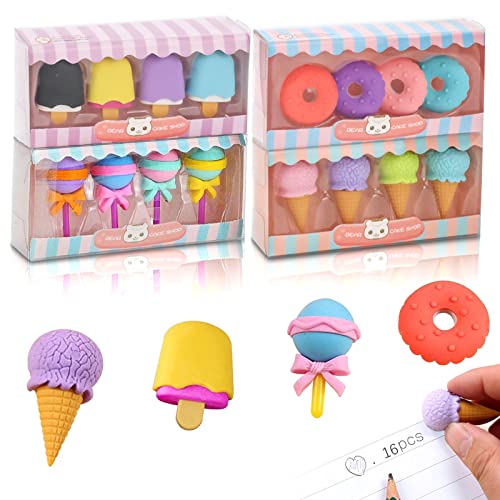 ENAIAH Kreativt Radergummi, 16 Stycken Nyhet Suddgummi för Barn, Härlig Tecknat Suddgummiset för Studenter, Skoltillbehör Brevpapper