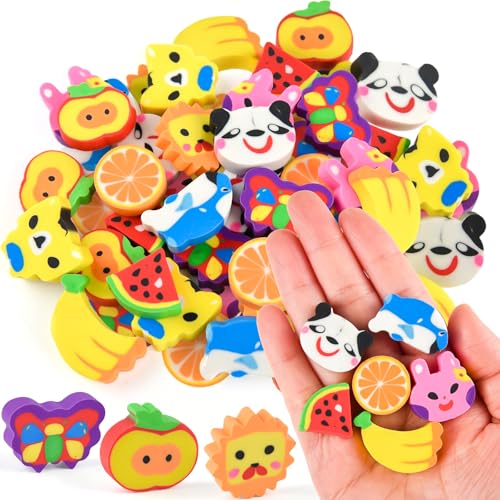 300 stycken färgglada plast mini radergummi, söt nyhet suddgummin för fest favorit läxor belöningar gåva, penna små suddgummi djur set för studenter, slumpmässig stil