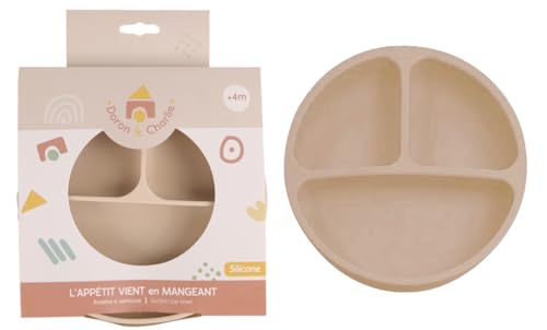 DORON & CHARLIE - sugkoppstallrik - barnmåltid - 056702 - beige - silikon - 3 fack - mikrovågskompatibel - tvättmaskin - lätt att rengöra - ergonomisk - från 4 månader