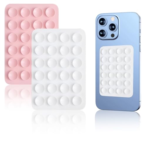 2-pack universell sugpropp mobiltelefonhållare – för iPhone, Samsung med mera – självhäftande, halkfri, handsfree för selfies, videor och GPS i bilen – inkl. spegelhållare för badrum (rosa, vit)