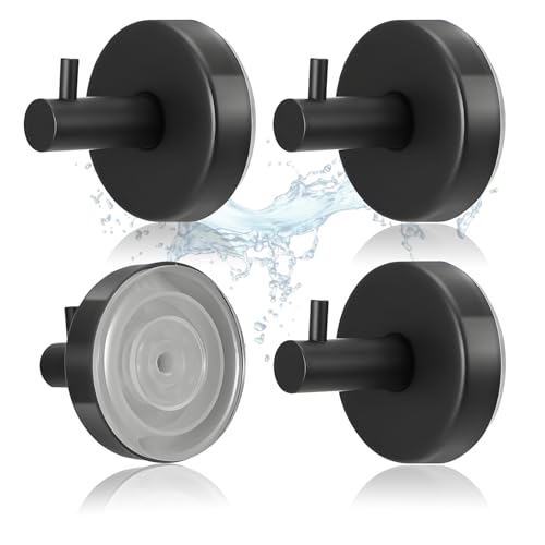 OYIWINMI 4-pack sugpropp krok väggkrok rostfritt stål, vakuum sugkoppskrokar praktiska handdukskrokar med sugkoppar för badrum och kök, handdukshållare utan borrning, 30 kg lastkapacitet (svart)
