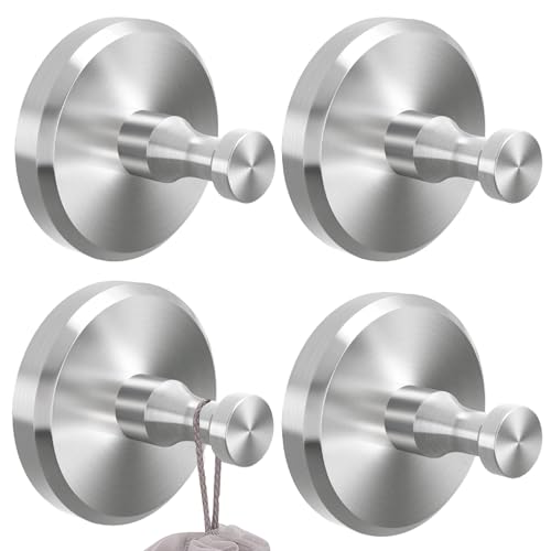 OYIWINMI 4-pack sugpropp krok väggkrok rostfritt stål, vakuum sugkoppskrokar praktiska handdukskrokar med sugkoppar för badrum och kök, handdukshållare utan borrning, 30 kg lastkapacitet (silver)