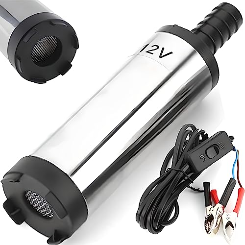 Retoo 12 V vattenpump i rostfritt stål med filter, för bil, 12 l/min, oljepump, nedsänkbar pump för bränsleöverföring, sugpump för oljebyte, för dränering av vätskor, lätt och praktisk, nätkabel 1,5 m