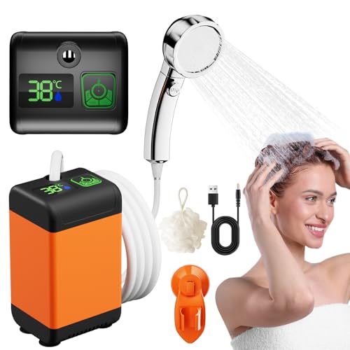 Suewidfay Campingdusch med batteri 7 600 mah, camping dusch med pump utomhus med smart display och 180 minuters sugpump för resor, trädgårdsarbete, biltvätt