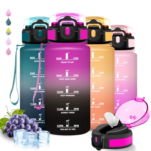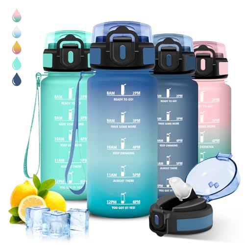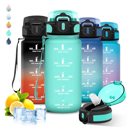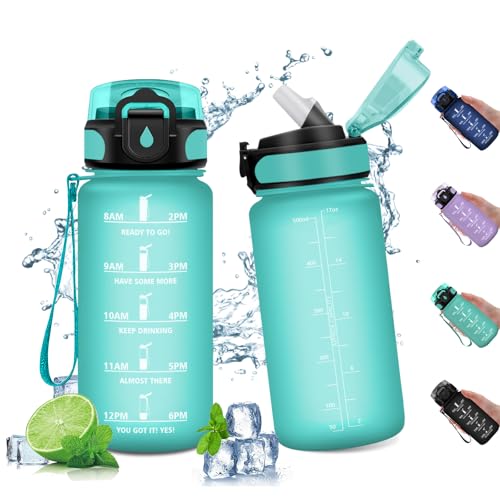 Vattenflaska 500 ml, vattenflaska med sugrör, läckagefri, motiverande flaska, lätt att bära, graderad vattenflaska med motiverande slogan, flaskor för skola, camping