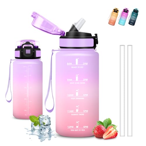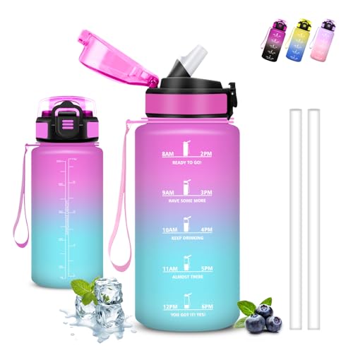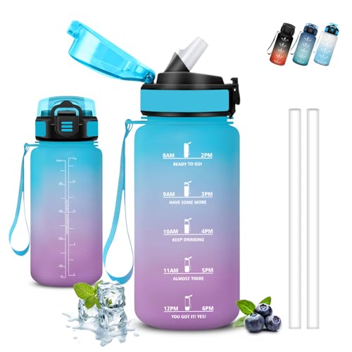 Sportvattenflaska, vattenflaska med sugrör, motiverande flaska med lock, återanvändbar flaska med tidsmarkör, flaska för vuxna, gym, camping, gym, cykel, sport