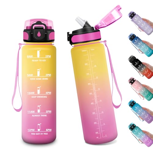 1 l sportflaska, vattenflaska med sugrör, motiverande flaska med lock, gymflaska med tidsmarkör, vattenflaska för vuxna, sport, camping, gym, löpning, yoga