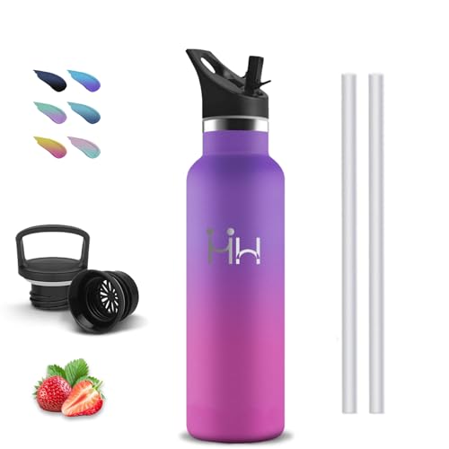 Enkel modern vattenflaska med sugrör | isolerad flaska i rostfritt stål för sportgym | Summit Collection | 650 ml | hallonvibbar