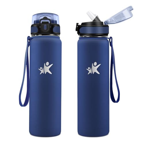 Grsta Flaska, 1 liter flaska, lätt att bära, läckagefri cykelflaska, sugrör, flaska med sugrör för vuxna, vattenflaska med drickstid, för sport, gym, vandring, marinblå