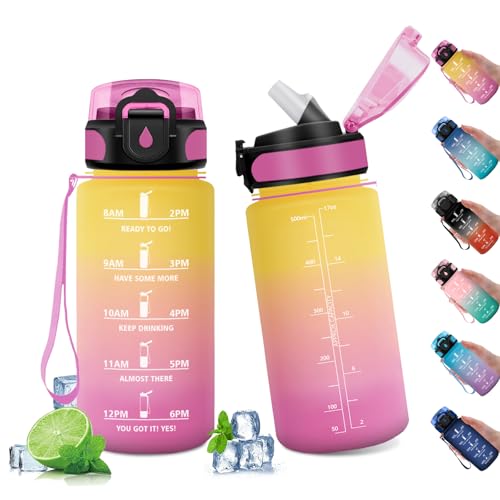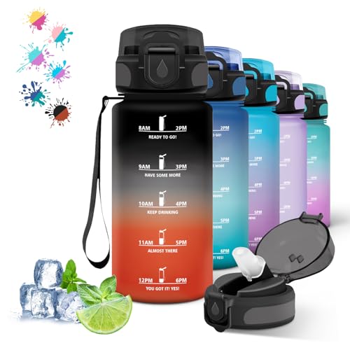 Sportvattenflaska, 500 ml, vattenflaska med sugrör, motiverande flaska med lock, återanvändbar flaska med tidsmarkör, flaska för barn, gym, camping, gym, cykel, sport