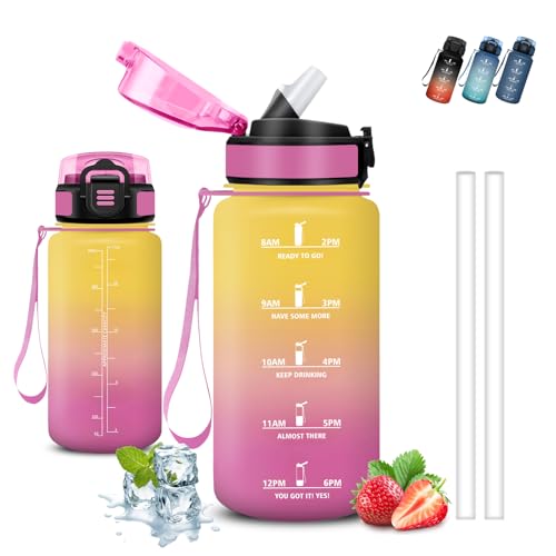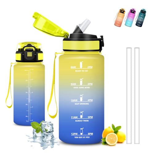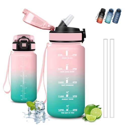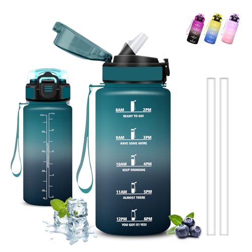 HoneyHolly 1 liter flaska, BPA-fri och läckagesäker, vattenflaska med sugrör, återanvändbar, motiverande flaska, gymflaska för skola, gym, kontor, sport