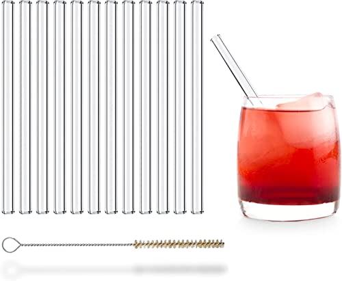 HALM Glasstrån 12x 15 cm korta sugrör av glas - Budgetlinje - Drickrör Återanvändbara - Diskmaskinssäkra - små glasdrickrör från Tyskland