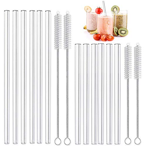 MIXIAO Återanvändbara Sugrör med Rengöringsborste, Glas, Paket med 6 x 21,5 cm och 6 x 15 cm