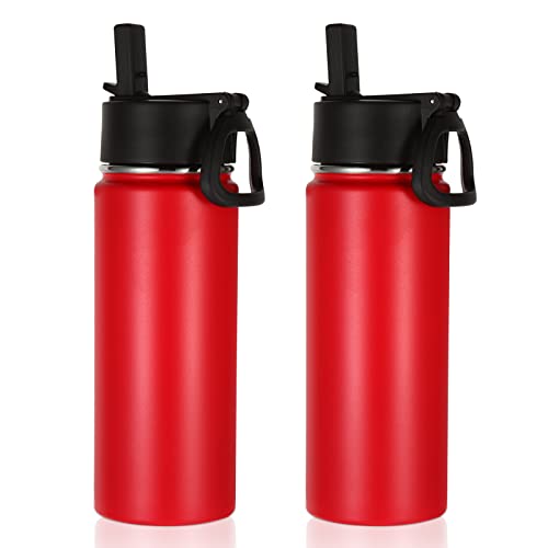 Volhoply 530 ml isolerad vattenflaska volym 2-pack, barn rostfritt stål vattenflaskor med sugrör, bred mun återanvändbar metall vattenflaska, dubbel vägg vakuum sportflaska för kall dryck (röd