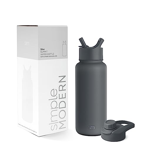 Enkel modern vattenflaska med sugrör och tugglock vakuumisolerat rostfritt stål metall termosflaskor | återanvändbar läckagesäker BPA-fri flaska för gymsport | Summit Collection | 32 oz grafit