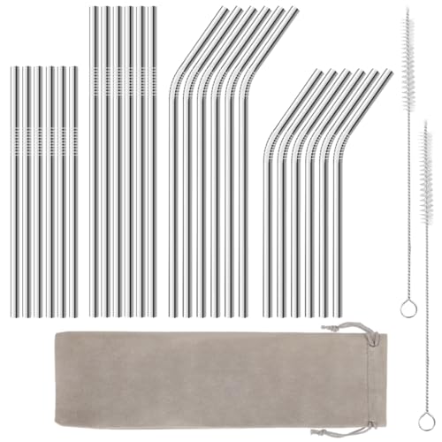LessMo 12 st Sugrör i Rostfritt Stål, återanvändbara Sugrör i Metall med 2 Rengöringsborstar för Smoothie, Milkshake, Cocktail och Varma Drycker