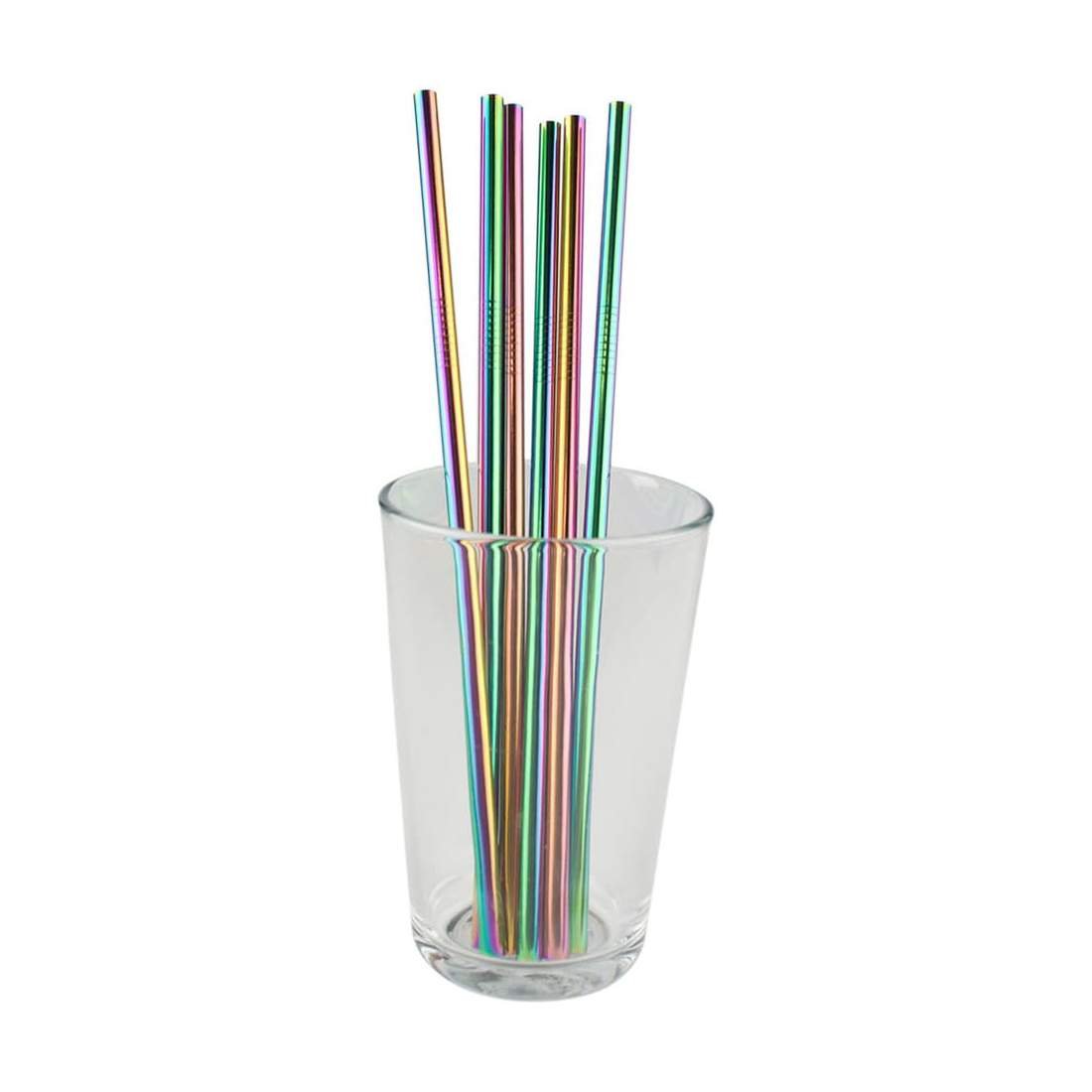 APS Sugrör 10st i metall Rainbow look - D: 8 mm, length: 21,5 cm