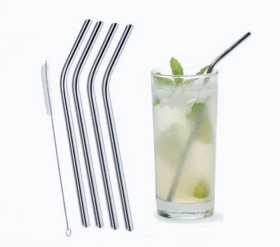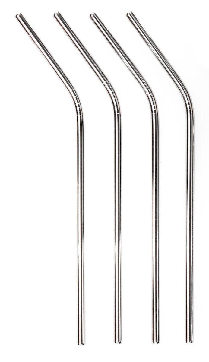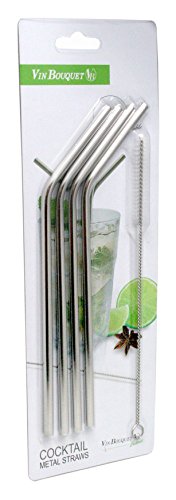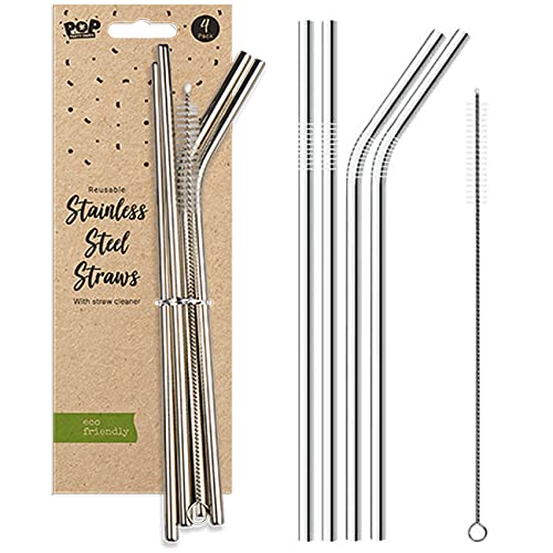 GEMS 4 x metall rostfritt stål återanvändbara sugrör miljövänliga + rengöringsborste fest sommaranvändning födelsedag smoothie mjölk shake vatten juice silver böjd & raka sugrör UK gratis P & P