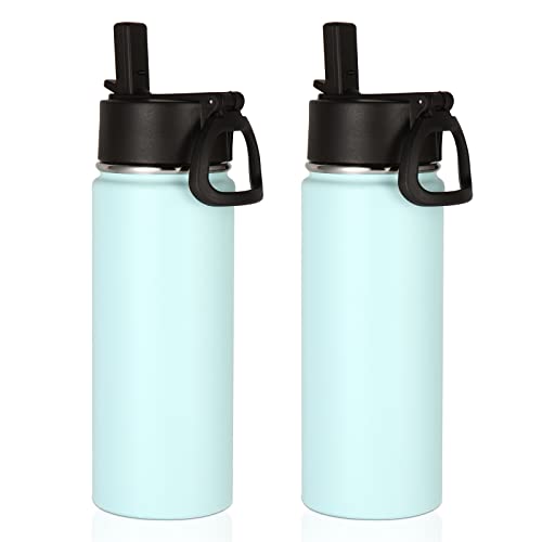 Volhoply 530 ml isolerad vattenflaska volym 2-pack, barn rostfritt stål vattenflaskor med sugrör, dubbelvägg vakuum metall vattenflaska, bred mun återanvändbar sportflaska för kall dryck (mix
