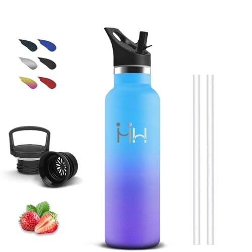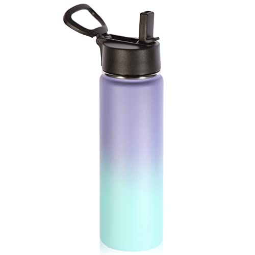 Volhoply 660ml isolerad vattenflaska med sugrör lock, rostfritt stål sport vattenflaska med handtag, metall bred mun resevattenflaska, skola återanvändbar vattenflaska (lila och blå, uppsättning av 1)