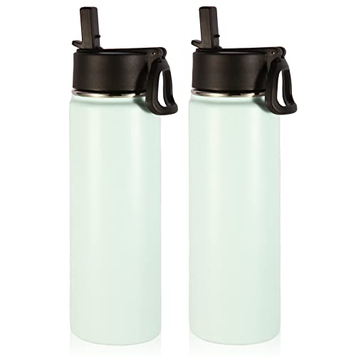 Volhoply isolerade vattenflaskor med sugrör i bulk 2-pack, 660 ml flaska i rostfritt stål med handtagslock, dubbelväggig metall vattenbehållare med bred mun, återanvändbar kallvattenflaska för skola