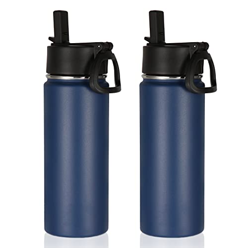 Volhoply 530 ml drickflaska i rostfritt stål, två förpackningar, dubbelväggig vakuumisolerad vattenflaska med sugrör, metall vattenflaska, BPA-fri kopp för barn, sport, skola, utomhus (marinblå, 2 set