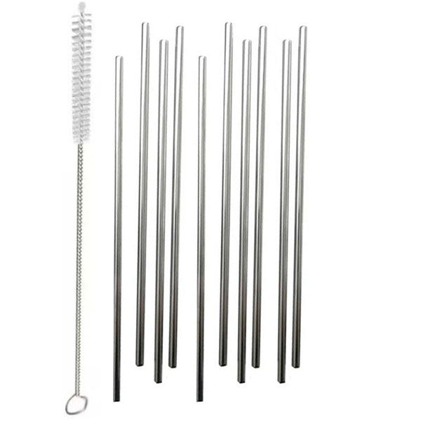 Sugrör metall 6 x 21,5 cm 10 st med borste
