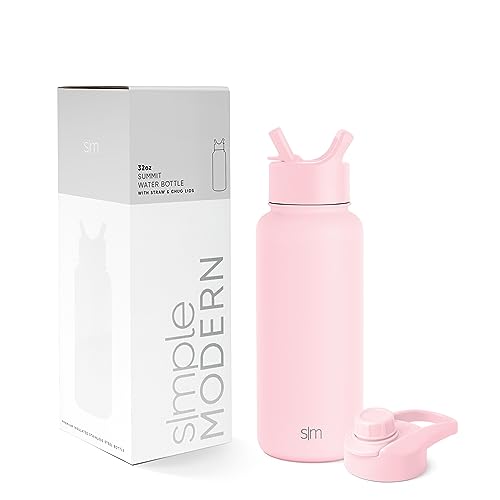 Enkel modern vattenflaska med sugrör och tugglock vakuumisolerat rostfritt stål metall termosflaskor | återanvändbar läckagesäker BPA-fri flaska för sport | Summit Collection | 32 oz, hallonvibbar