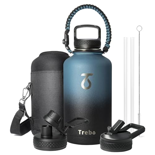 Termisk vattenflaska, 2 L, Trebo vattenflaska med sugrör, 2 l vattenflaska i rostfritt stål, håller kylan i 48 timmar, metall termisk vattenflaska med paracordhandtag, indigo