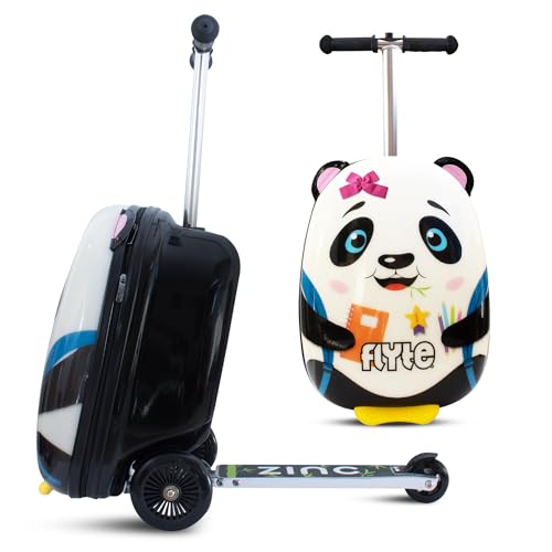 FLYTE folding scooter suitcase for children, hard shell, on wheels, 2 in 1, 18 inches, 25 liters capacity, Penni the Panda