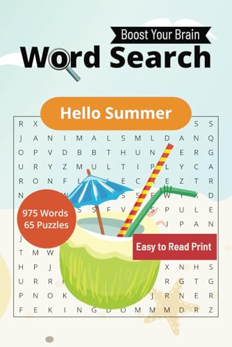 Hello Summer Word Search Puzzle Book: 975 Words - 65 Themed Puzzles for Adults All About Summer - Sunshine, Sand, Memories. Easy to Read Print with ... Great gift idea! (Boost Your Brain)