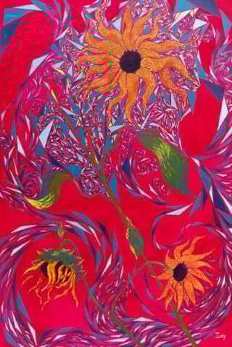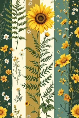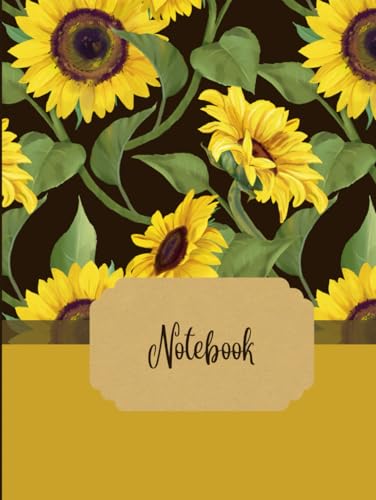 Large Hardcover Sun Flowers BLK Lined Notebook for Women, Teens & Flower Lovers