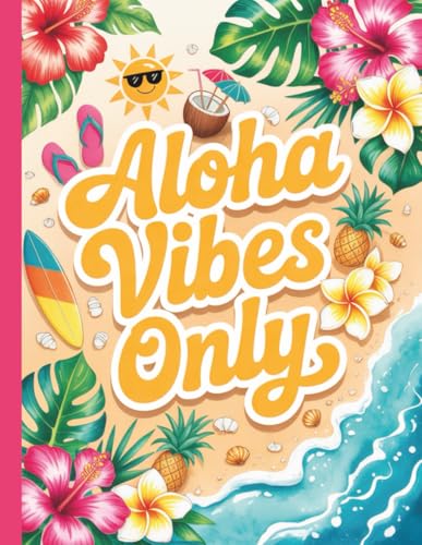 Aloha Vibes Only Notebook: Tropical Hawaiian Journal with Hibiscus Flowers, Surfboard & Sun, Cute Summer Notebook for Girls, Kids, or Teens, Fun Island-Themed Writing Journal – 8.5x11 in 120 Pages