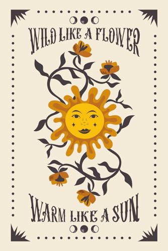 Boho Folk Art Bullet Journal Notebook “Wild Like a Flower, Warm Like a Sun”: Vintage Sun & Bird Cover Aesthetic Dot Grid Planner for Creative Journaling