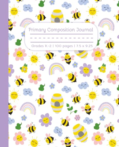 Bumblebee Primary Composition Journal | Colorful Bee Insect Rainbow Flower Sun K-2 Handwriting Practice Notebook with Dotted Midline | Creative Story ... Learners, Students | 100 Pages | 7.5 x 9.25
