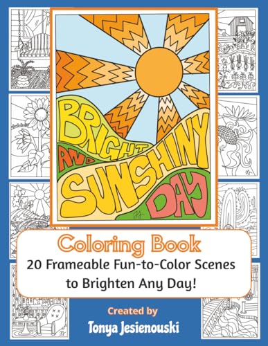 Bright Sunshiny Day Coloring Book-20 Frameable Fun-to-Color Scenes to Brighten Any Day: For Kids and Adults with Flowers, Water, Garden, Relaxing in the Sun for Mindfulness and Wellness