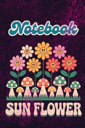 Retro Sun Flower Notebook | Smiling Flowers, Mushrooms & Vintage Typography: 1970s-Inspired Floral Notebook with Pink Distressed Texture and Groovy Colors