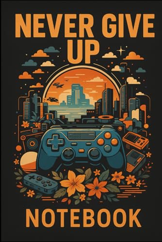 Never Give Up Cityscape & Gaming Notebook: 6x9 Blank Lined Journal with Rising Sun, Controllers & Flowers – Motivational Notebook, 100 Pages