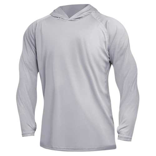 DiULi Herr UV-skyddande långärmad tröja, UPF50+ UV-skydd, Rash Guard, Sun Hoodie, Ljusgrå-xl, XL